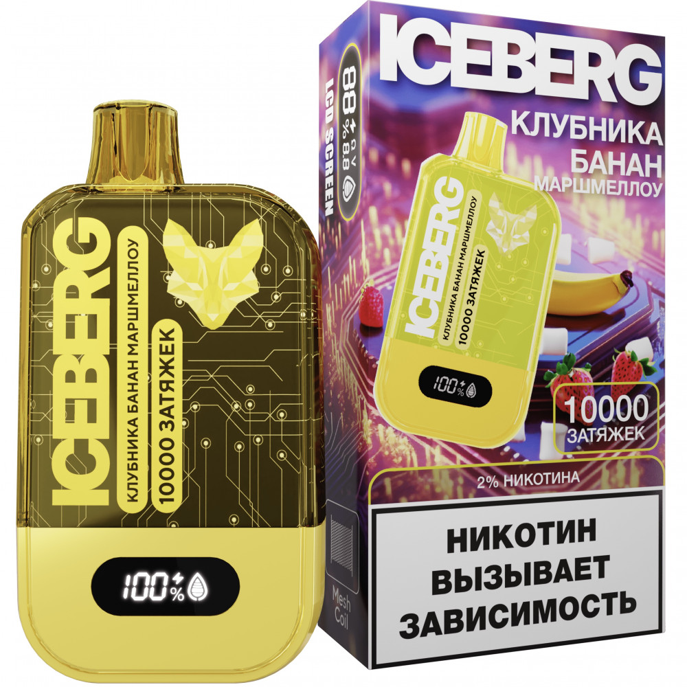 Электронная сигарета ICEBERG XXL 10000 Клубника банан маршмеллоу на 10000 затяжек